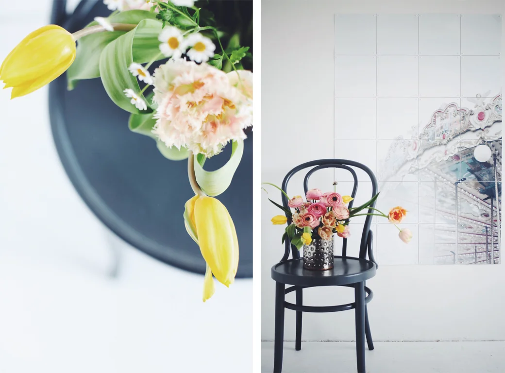 Flower bouquets are the perfect finishing touch of any interior setting, don’t you think? Of course I can drop by the local florist and buy the most beautiful arrangement - but I find it more rewarding to make one of my own. It adds personal touch to interiors, just like I did with a personal favorite image that I took in Paris of a merry-go-round as you'll see below. I love adding personal touches to my home, don't you? And with flowers, you are the artist!