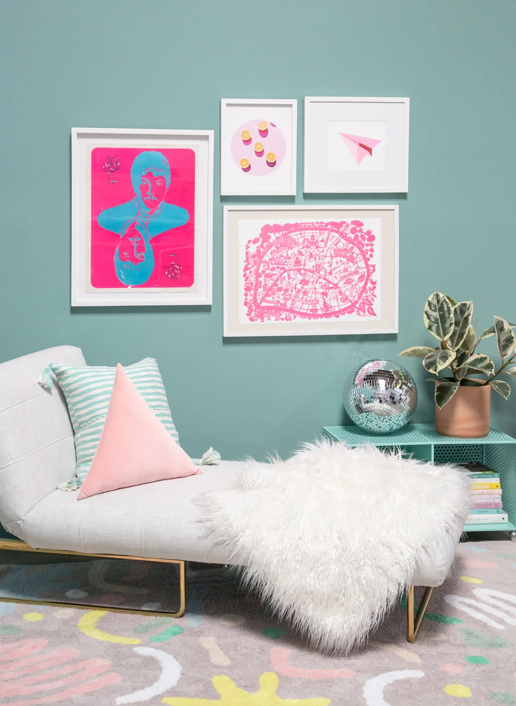 We have partnered with Lorena Canals (whose rugs we have used in the studio for years because we love the colors and patterns) to make a collection of HAPPY Rugs! We have six patterns: Happy Hills, Happy Lanes, Happy Prism, Happy Day, Happy Party, and Happy Daisies. Each are about 4.5' x 6.5’ and the very best part of all Lorena Canals rugs - they’re machine washable. Perfect for kids, pets, and honestly everyone! Just throw your rug in the washer - it’s that easy! (Note: You can buy them online here.)