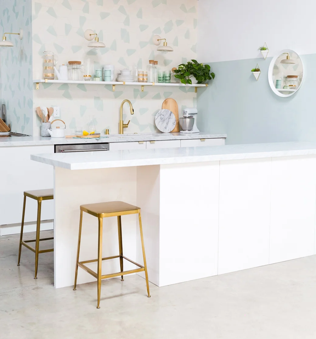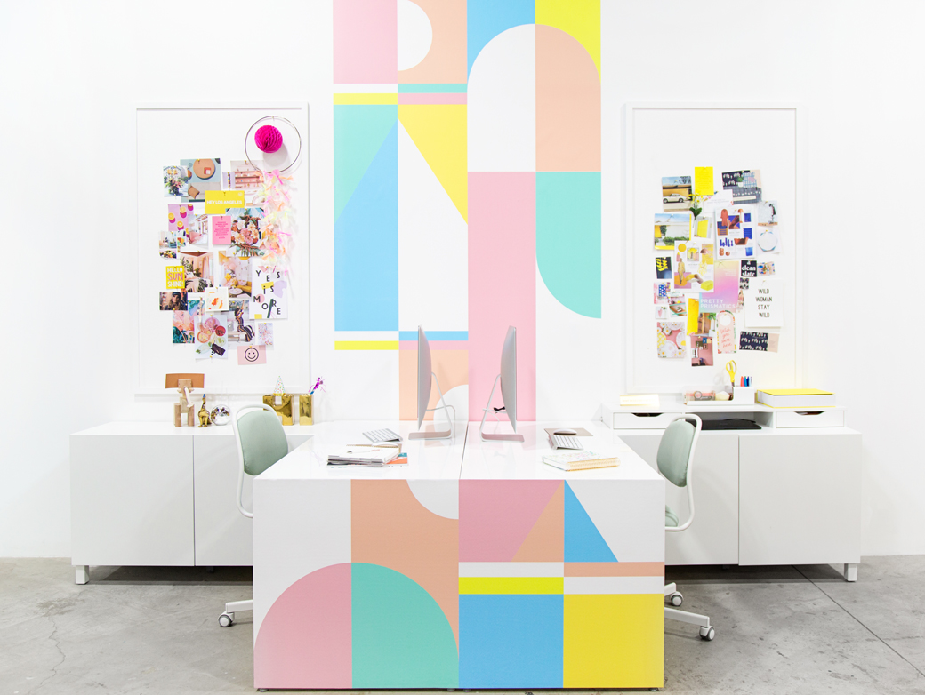 We have several spaces in our studio - the Craft Room, the Shoot Space, the Kitchen, the Main Office, and my Executive Office. The Craft Room was designed by the IKEA Home Tour Squad, and they used IKEA kitchen items to make it totally functional and amazing! The Kitchen, Main Office and Executive Office were designed by my talented friend, Sarah Sherman Samuel, who worked with my inspiration of Oh Joy! color and whimsy to make it just the right mix of sophisticated and whimsical.